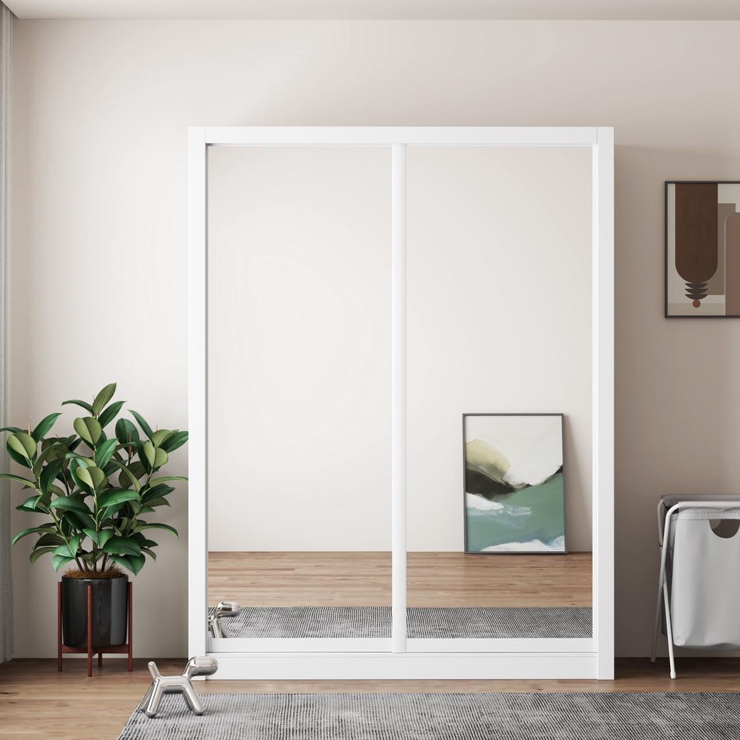 The RIFA Full Mirror Sliding Door Wardrobe is designed to bring style, storage, and function into modern bedrooms. Featuring full mirror sliding doors, it helps save space while adding brightness and depth to the room. The smooth sliding system makes daily use easy, especially in compact spaces. Inside, the wardrobe offers a practical layout for hanging clothes, folded items, and everyday essentials. Built with a durable engineered wood structure and clean white finish, it blends easily with different bedroom interiors. Perfect for apartments, guest rooms, or family homes looking for smart storage with a modern look.