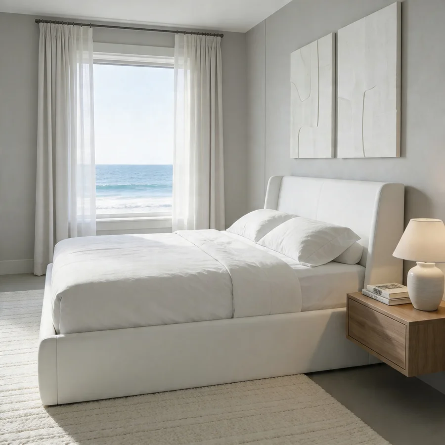- Smooth white upholstered finish for minimalist look