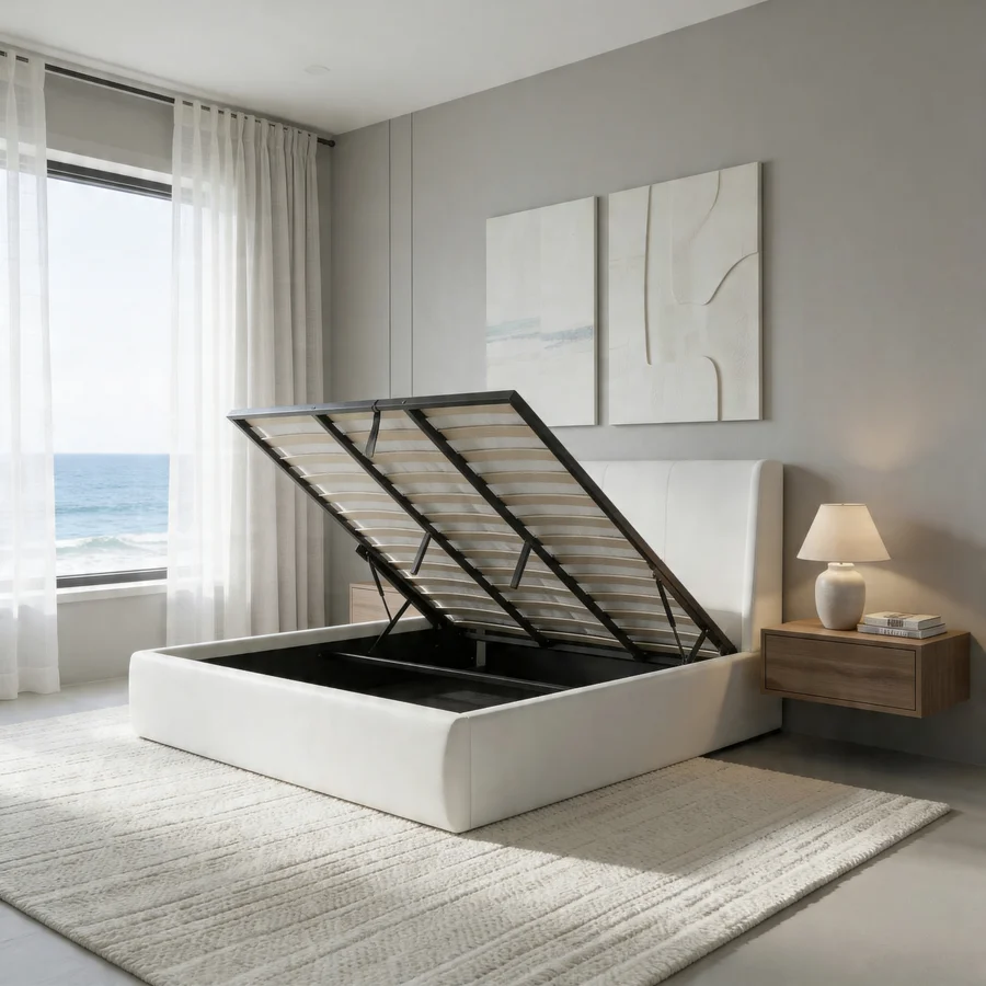 - Queen size (6.6) with gas-lift storage mechanism