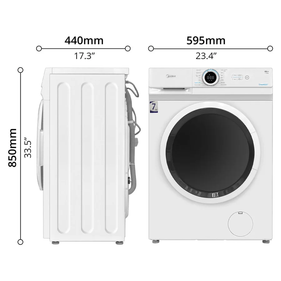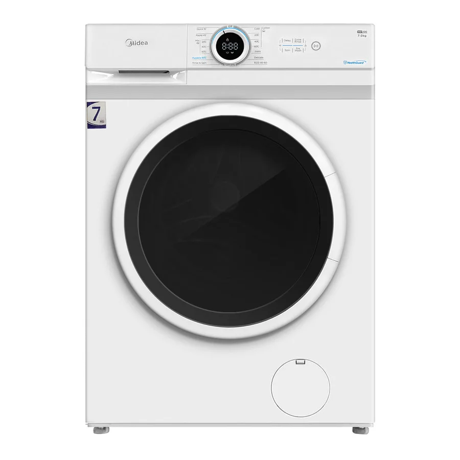 The Midea 7kg front-loading washing machine delivers powerful cleaning in a compact footprint, making it ideal for homes where space is precious. Its slim depth design slides effortlessly into tight laundry areas without sacrificing performance or capacity. This washer is built for busy households. Choose from multiple wash programs tailored to different fabric types, or use the quick wash option (15 or 45 minutes) for everyday loads. The dedicated hygiene wash setting provides deep cleaning when you need it, while the strong spin speed reduces drying time—saving energy and time. Simple LED controls make operation intuitive, and the front-loading design is gentler on fabrics while using less water than top loaders. Rated at 2050W with IPX4 waterproofing, it's built for reliable home use. This is the practical choice for families wanting efficiency without compromise.