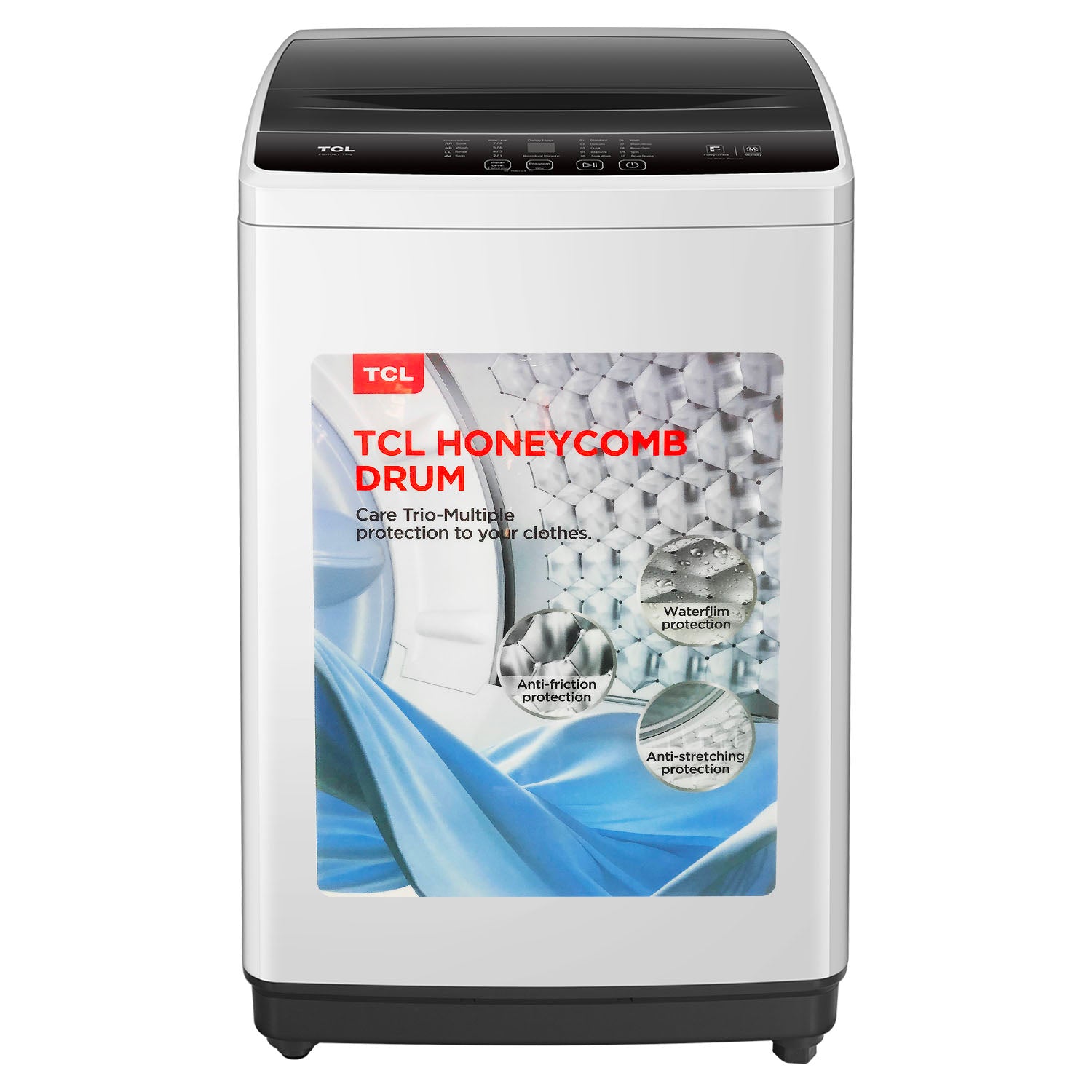 The TCL F107TLW is a practical 7kg top-loading washing machine designed for everyday home use. With its compact 515 x 530 x 870mm footprint, it fits easily into tight bathroom or laundry spaces while delivering solid washing performance at an unbeatable price. This machine offers 10 different washing programs including standard, delicate, quick, intensive, and soak wash cycles, giving you flexibility for all fabric types. The Fuzzy Control technology adapts water level and wash duration automatically, while the Ag+ anti-bacteria impeller keeps your clothes fresh and hygienic. Quick wash cycles let you handle smaller loads in under 30 minutes. Key family-friendly features include a child safety lock, 24-hour delay start for flexible scheduling, and memory backup to retain your last-used settings. The pre-dissolution system ensures detergent mixes properly, and the lint filter captures debris before spin-dry. Rated at IPX4 moisture protection and backed by a 12-month warranty, it's built to handle the humid Maldivian climate reliably.