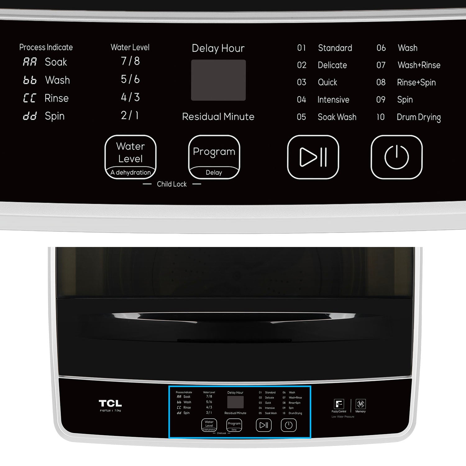 - Fuzzy Control auto-adjusts water and wash time for efficiency