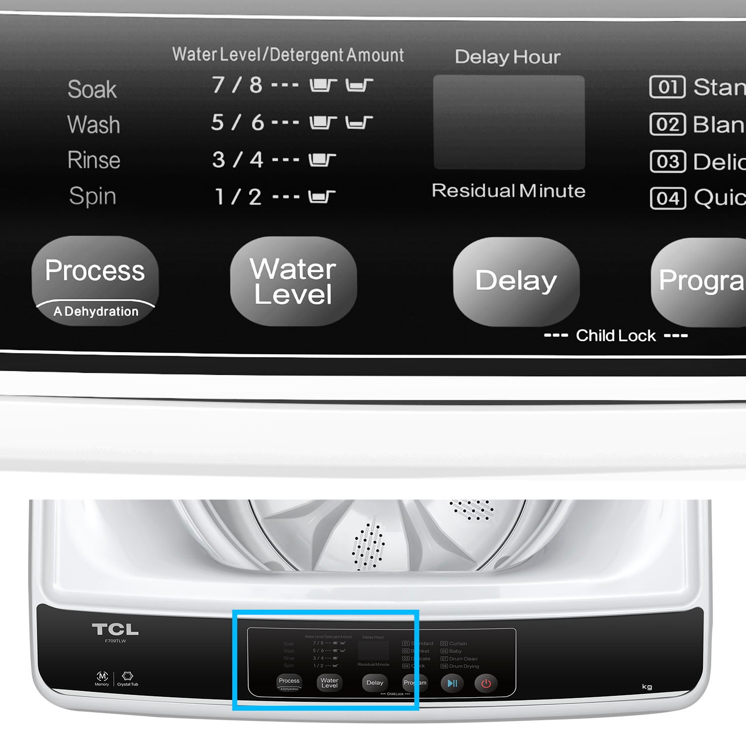 The TCL F709TLW is a dependable 9kg top-loading washing machine designed for everyday family laundry. With 8 washing programs including standard, delicate, quick, baby, and drum clean cycles, it handles everything from everyday clothes to delicate fabrics with ease. The soft-close lid and crystal tub provide durability and a premium feel, while features like quick wash cycle and 24-hour delay start save you time and energy. Child safety lock ensures peace of mind in homes with children. Rated at 220-230V with IPX4 moisture protection, it's built for reliable home use and comes with a 12-month warranty. The compact dimensions (556 x 566 x 910mm) fit most laundry spaces without taking up excessive room.